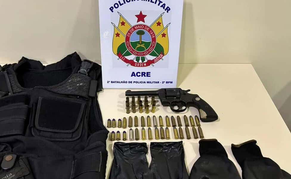 Arma de fogo, munições e colete balístico são apreendidos pela Polícia Militar no Praia do Amapá