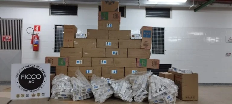 Uma ação integrada de combate ao crime organizado no Acre (FICCO/AC), composta pela Polícia Federal, Polícia Rodoviária Federal, Polícia Civil, Polícia Militar e Polícia Penal, resultou na prisão de quatro suspeitos e na apreensão de cerca de 45 mil maços de cigarros contrabandeados em duas operações distintas. Além dos cigarros, os veículos utilizados no transporte dos ilícitos também foram apreendidos.