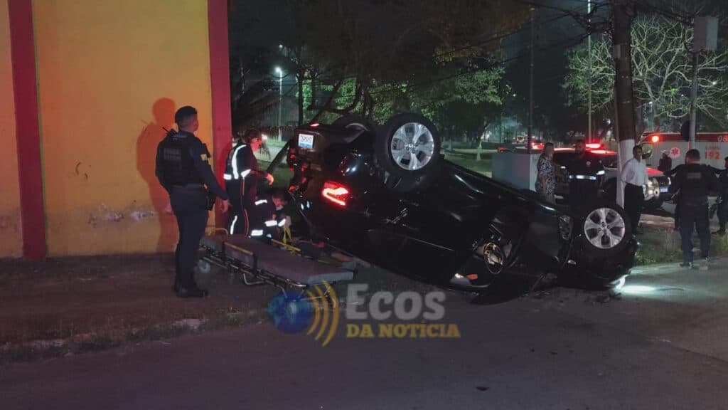 Uma colisão entre dois veículos resultou em um capotamento e deixou o Policial Militar Diego Conceição de Araújo, de 36 anos, ferido na noite desta sexta-feira, 20, no cruzamento das ruas José de Melo com a Via Parque, no bairro Bosque, em Rio Branco.