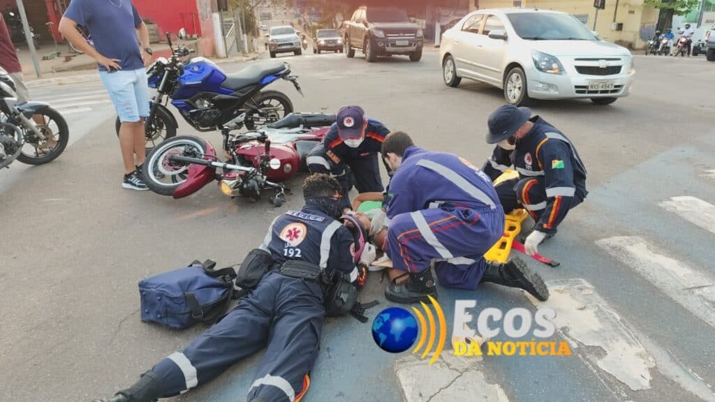 Um acidente envolvendo duas motocicletas deixou Francisca Tânia, de 36 anos, ferida na tarde deste sábado, 12, no cruzamento das avenidas Ceará e Getúlio Vargas, no Centro de Rio Branco.