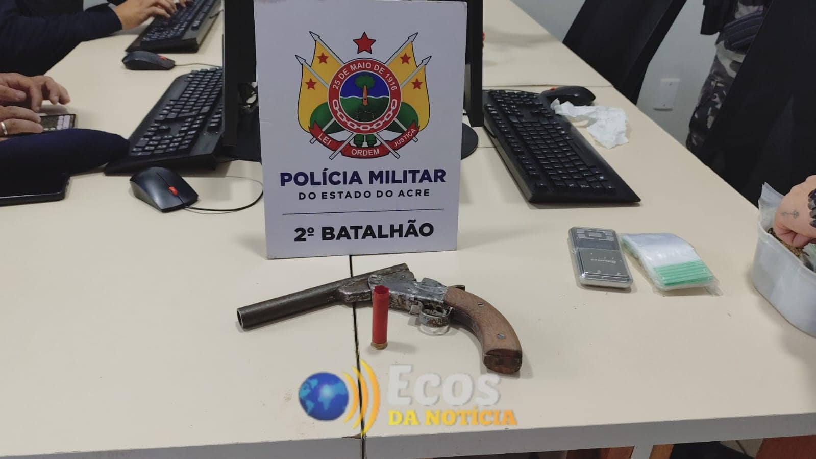 Alexandre Galdino de Souza, de 29 anos, foi preso, e um adolescente de 17 anos, apreendido na tarde desta quarta-feira (26), após atentarem contra a vida do motoboy Thiago Oliveira Albuquerque, de 25 anos. A vítima foi ferida com um tiro de escopeta no Ramal da Usina, no bairro Belo Jardim 3, Segundo Distrito de Rio Branco.