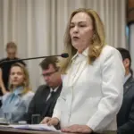 A procuradora-geral do Estado, Janete Melo, iniciou sua fala emocionada, agradecendo à Assembleia Legislativa pela realização da sessão solene e destacando a importância da homenagem para toda a advocacia pública acreana. “É transbordando de alegria e também com as mãos geladas de tanta emoção que inicio minha saudação à mesa diretora da Assembleia, à pessoa do seu presidente, deputado Nicolau Júnior, e ao deputado Pedro Longo, autor do requerimento que tornou possível esta sessão. Me sinto muito honrada de estar aqui hoje para celebrar com meus colegas os 48 anos da Procuradoria-Geral do Estado do Acre”, afirmou.
